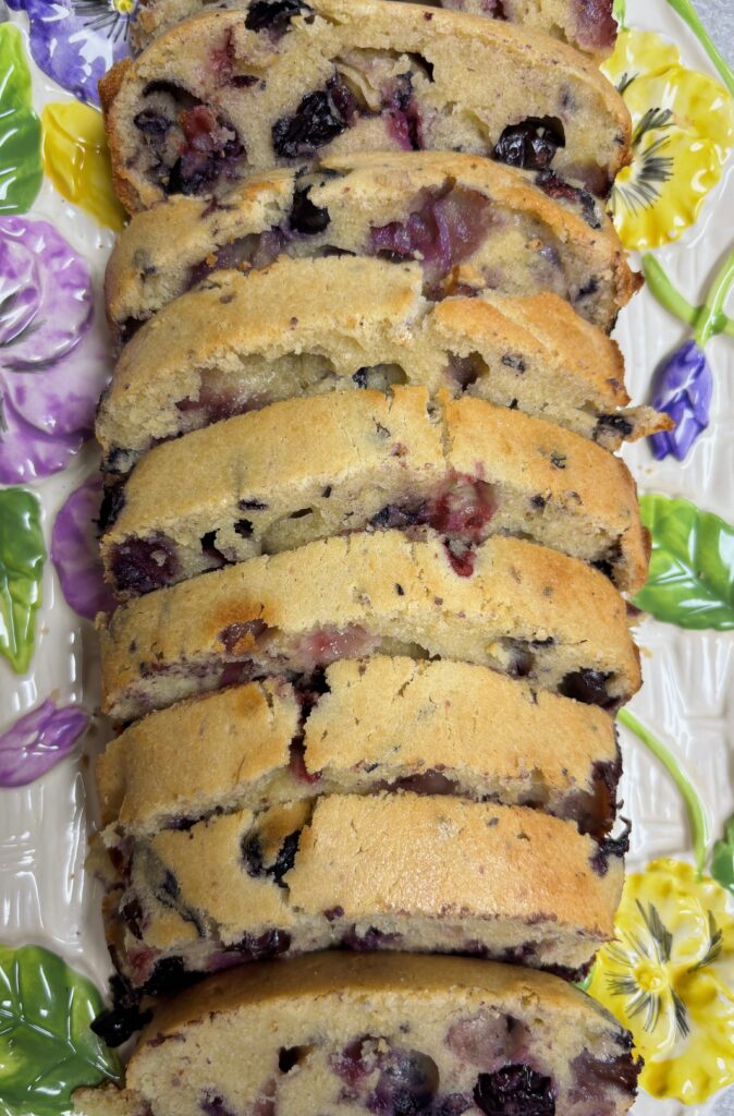 When you mix in the blueberries, make sure to do so very gently to keep them from being smashed