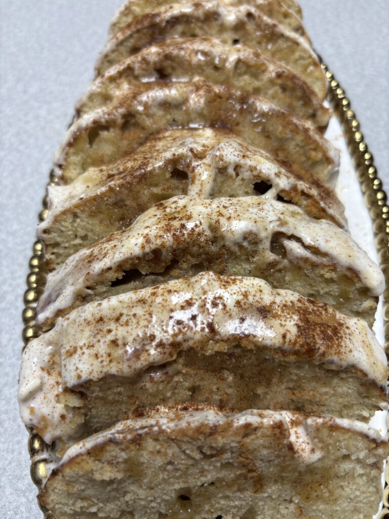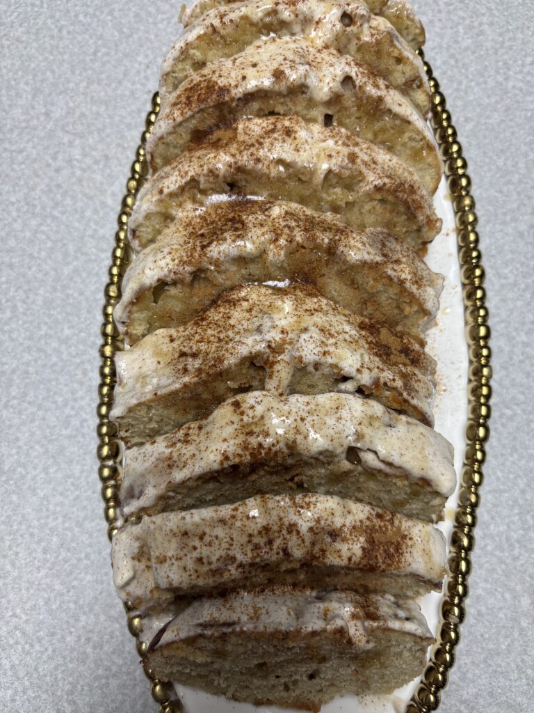 The, add the flour, cinnamon, and baking powder and combine until you have a thick batter